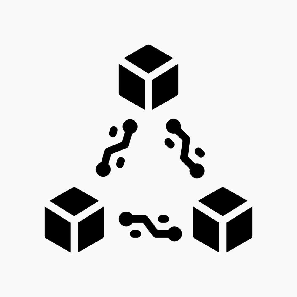 Blockchain Security icon in glyph style, symbolizing decentralized protection, verified blocks, and secure ledger data. Free Vector