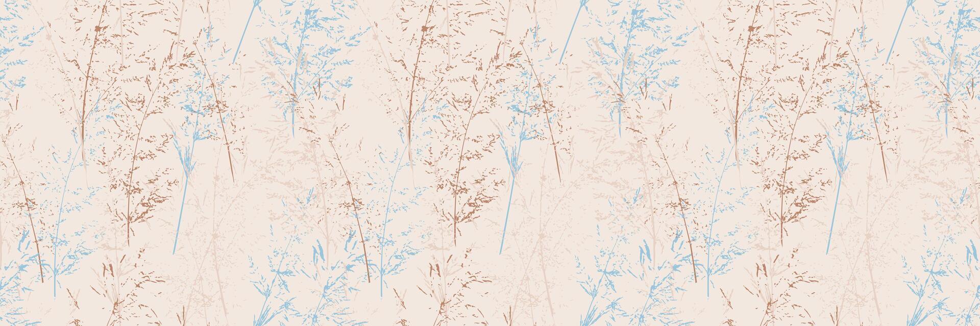 Seamless pattern with delicate abstract botanical stems in soft beige, brown and light blue tones on a cream background, creating an airy, elegant and nature inspired decorative design Pro Vector