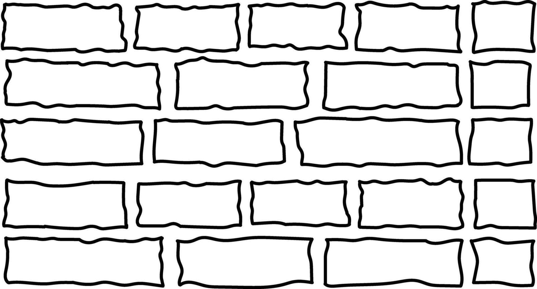 Hand- Drawn Brick Wall Pattern with Empty Rectangular Frames Pro Vector