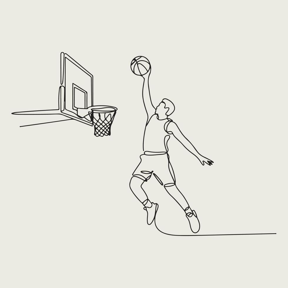 continuous line drawing of a basketball player dunking the ball Free Vector