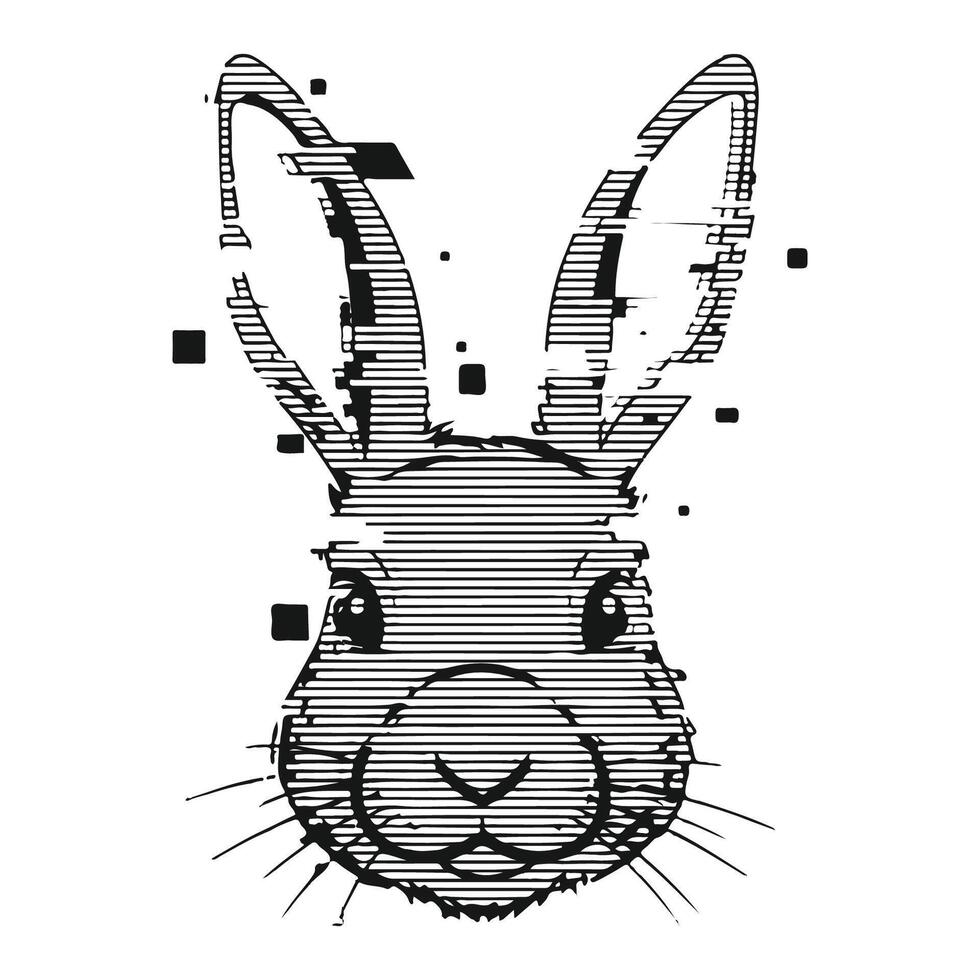 Stylized rabbit head with glitch effect and horizontal lines vector