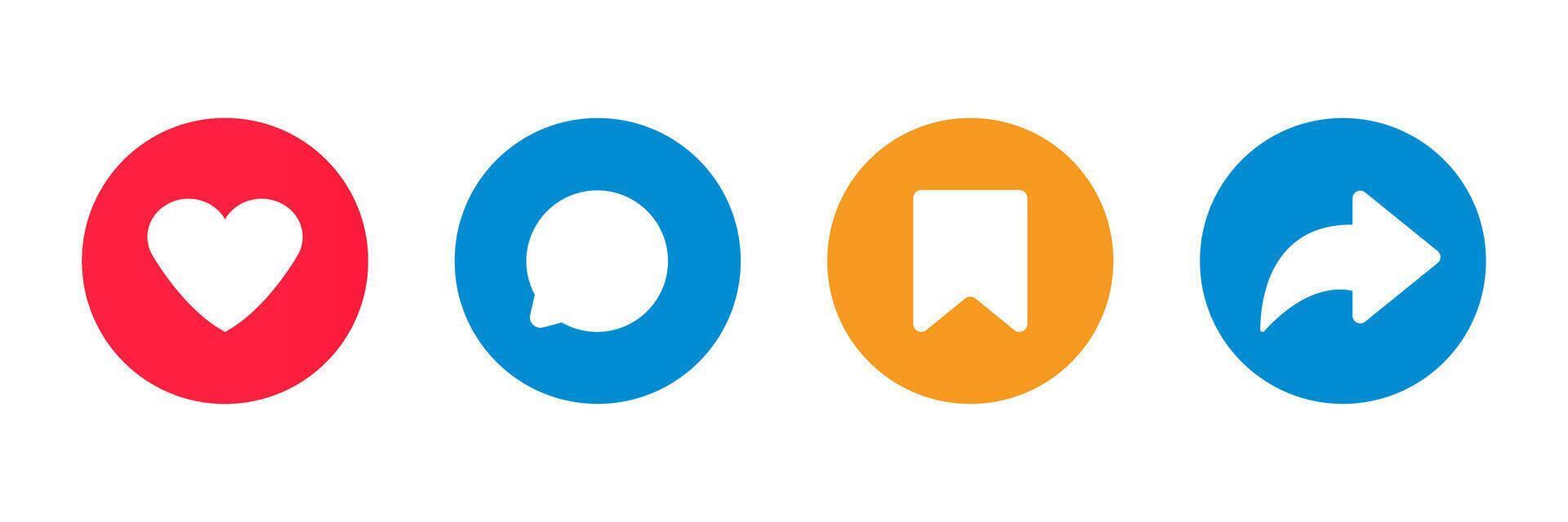 Heart shape, like, message bubble, comment icons, sharing. Save symbol. Pro Vector