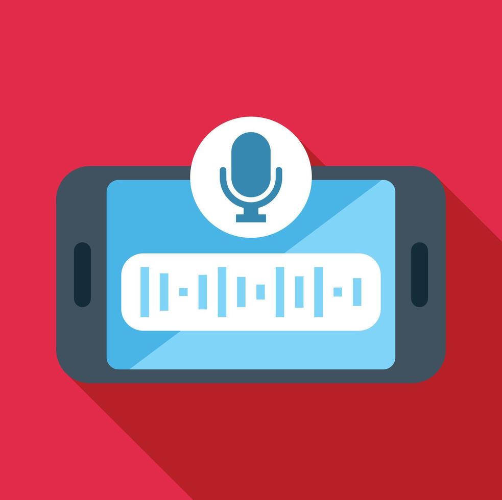 Smartphone displaying voice message recording with microphone icon Pro Vector