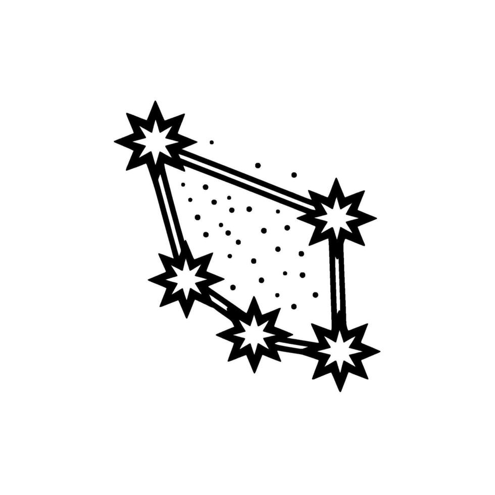 A stylized geometric representation of a constellation with sharp pointed stars and scattered dots Pro Vector