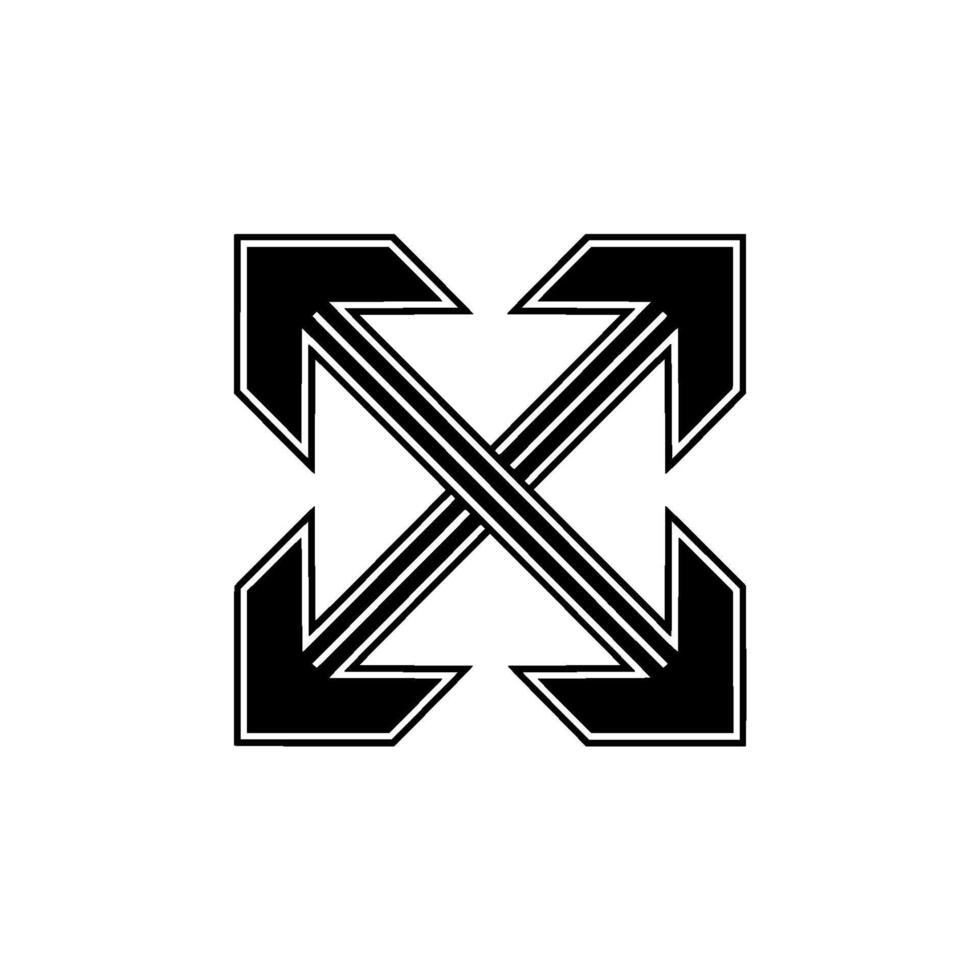 Minimalist representation of four arrows pointing outwards from a central intersection creating a symmetrical directional symbol Pro Vector