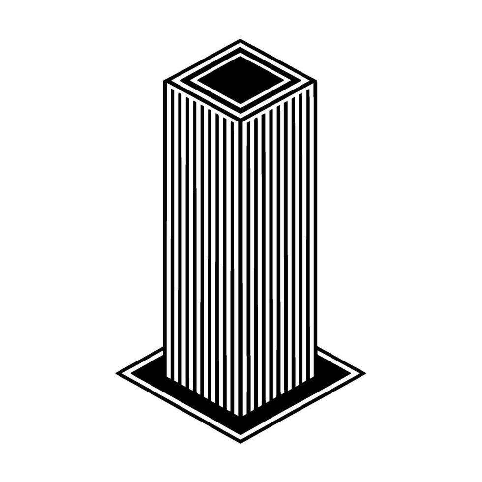 A sleek minimalist geometric illustration of a tall abstract skyscraper building rendered in bold with repeating vertical lines and a square base Pro Vector
