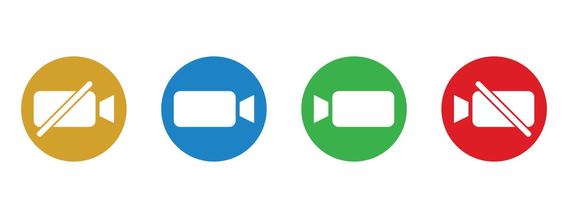 circular icons featuring a camera symbol, recording active and disabled status signs, multimedia and communication Pro Vector
