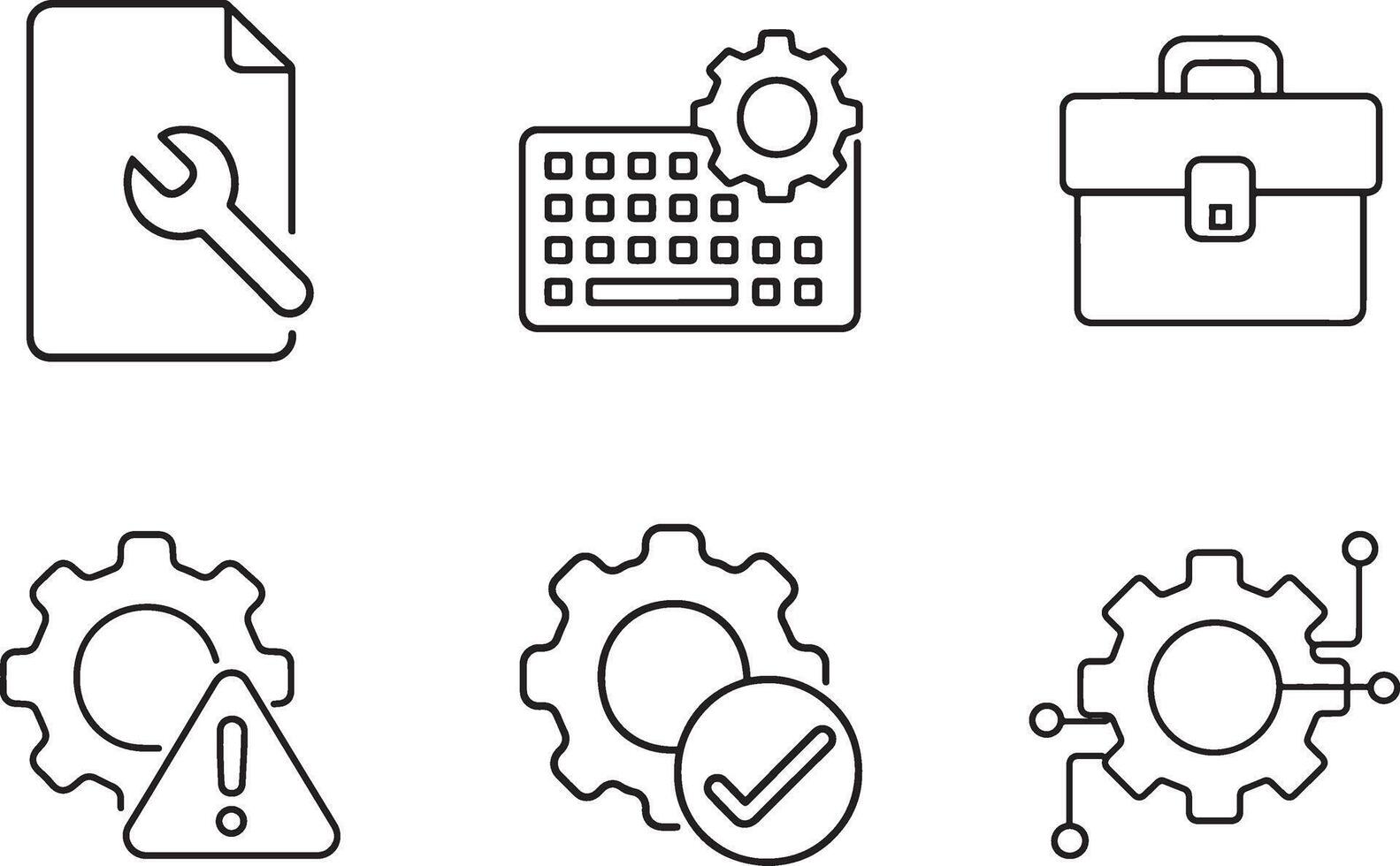 Settings customization icons document keyboard. Briefcase gears warning checkmark. Pro Vector