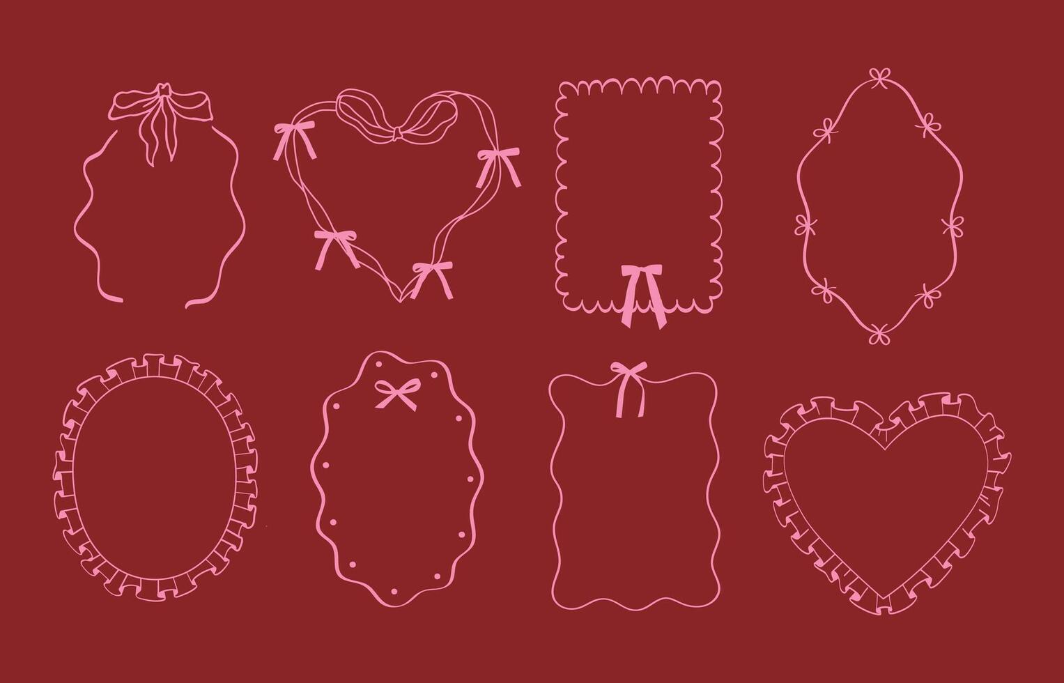 Coquette whimsical empty frame template design. Ribbon bow frames. Valentines day banner. Pro Vector