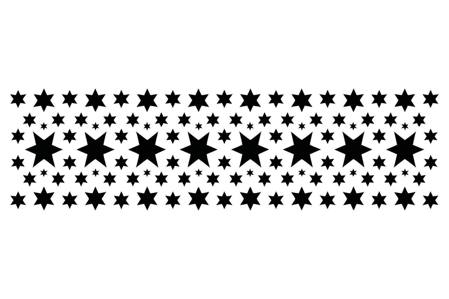Black six pointed stars in varying sizes arranged in a horizontal pattern on a white background Pro Vector