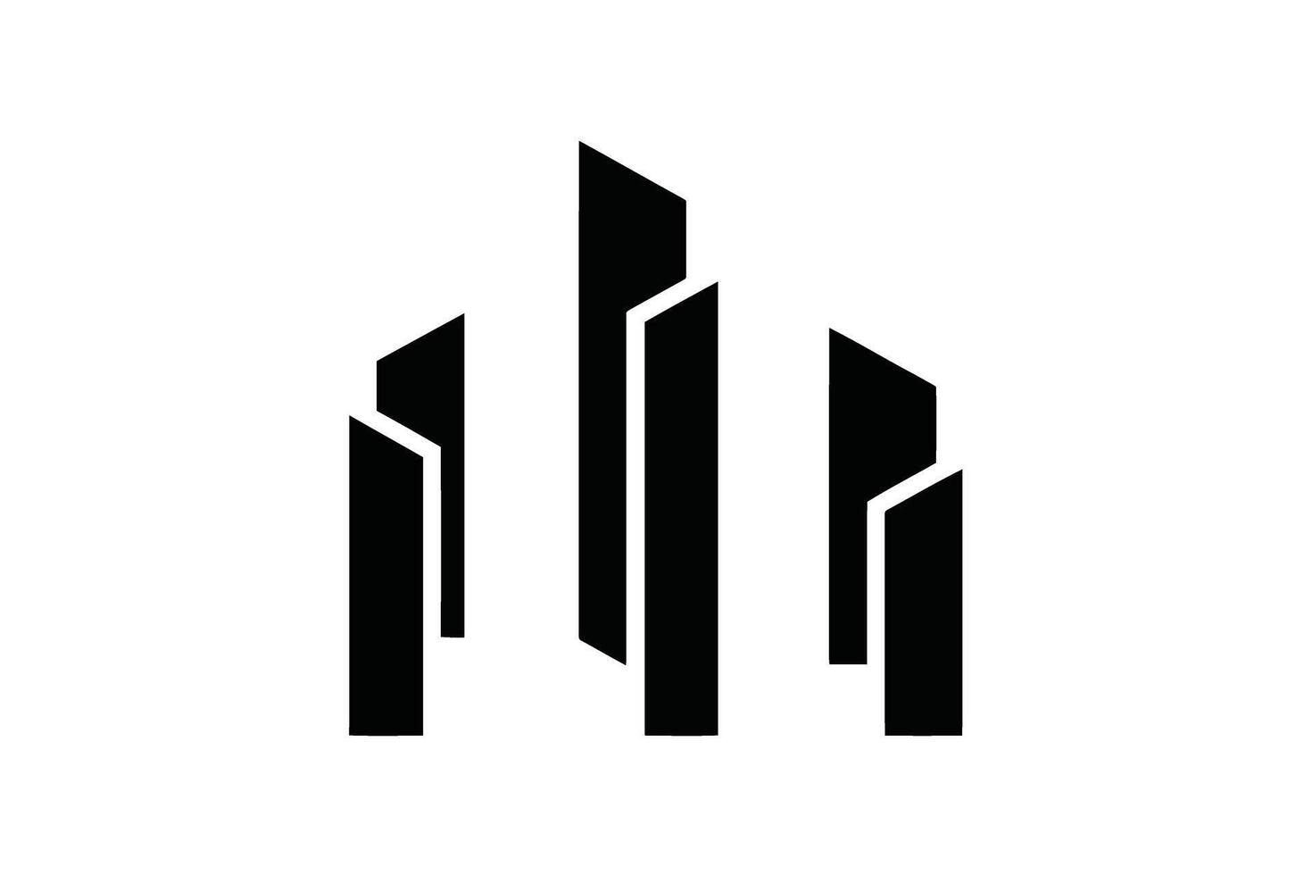 Black abstract geometric skyscraper building shapes on white background architecture city Pro Vector