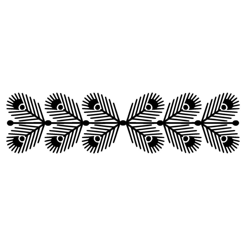 A minimalist featuring a repeating symmetrical border pattern of stylized peacock feathers with dot accents Pro Vector