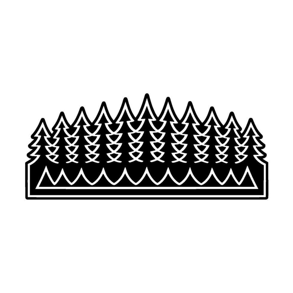 A monochrome depicting a stylized row of evergreen trees with intricate branch details Pro Vector