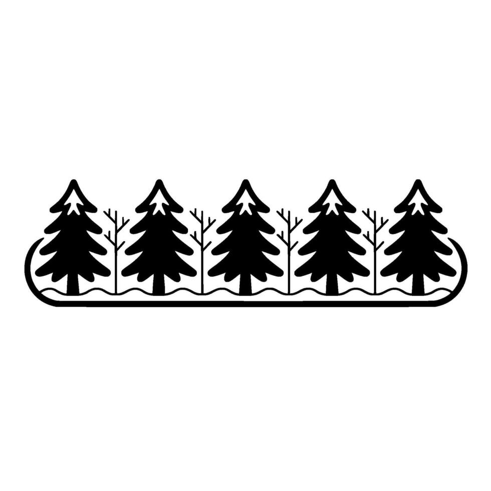 Stylized border featuring a repeating pattern of silhouette pine trees interspersed with bare winter branches Pro Vector