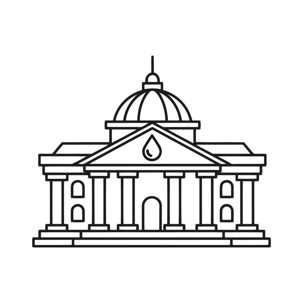 Outline icon of a classical government building with a water drop symbol Pro Vector