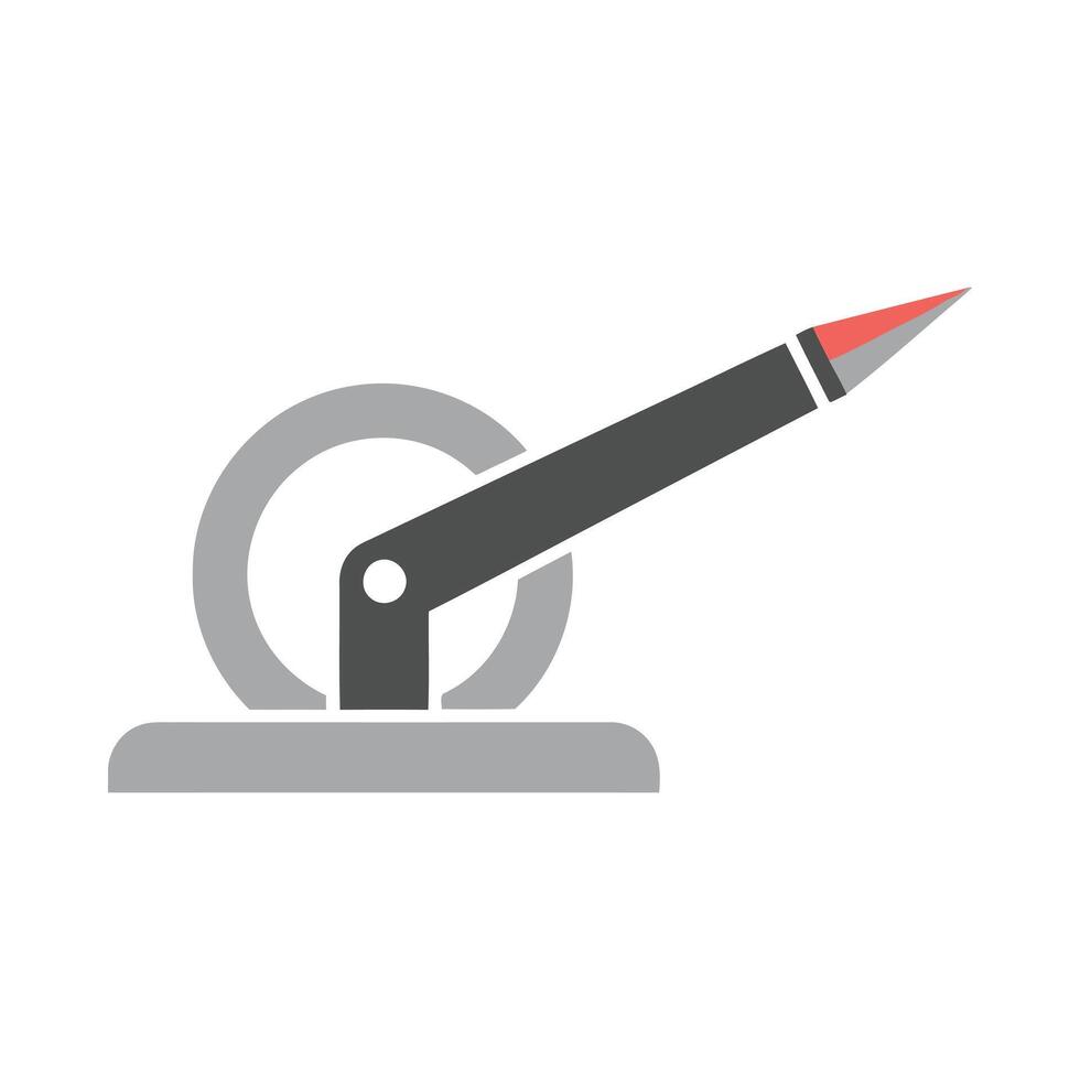 Abstract stylized robotic arm with sharp pointed end on a circular base vector