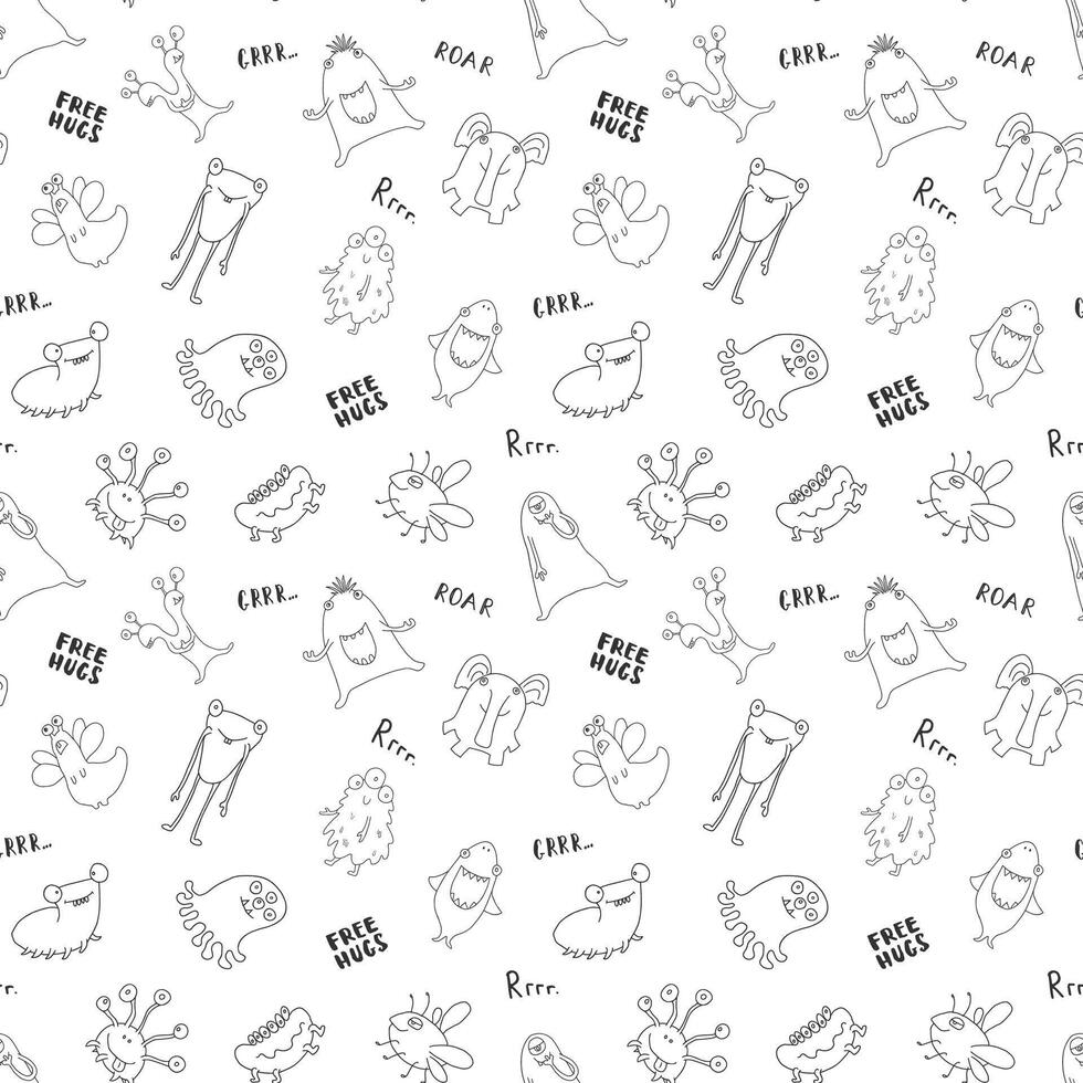 Seamless Pattern Layout of Playful Monsters Creatures Pro Vector