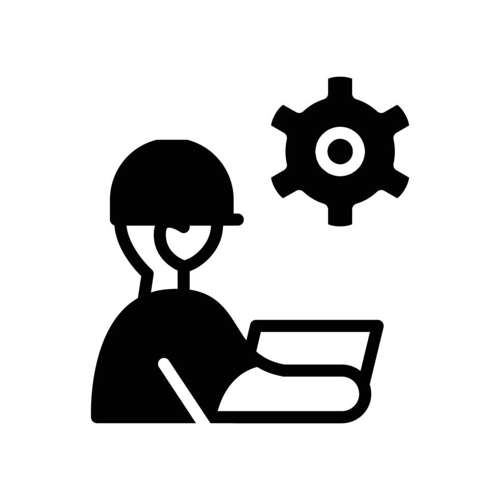 engineer with laptop and gear solid icon design good for web or mobile app Pro Vector