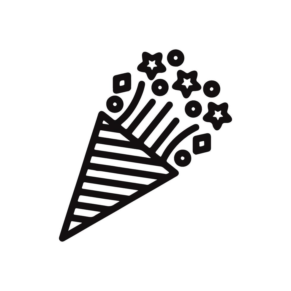 Exploding party popper with confetti and fireworks, a celebration line icon. graphic symbol for anniversaries, birthdays, and New Year's Eve Pro Vector