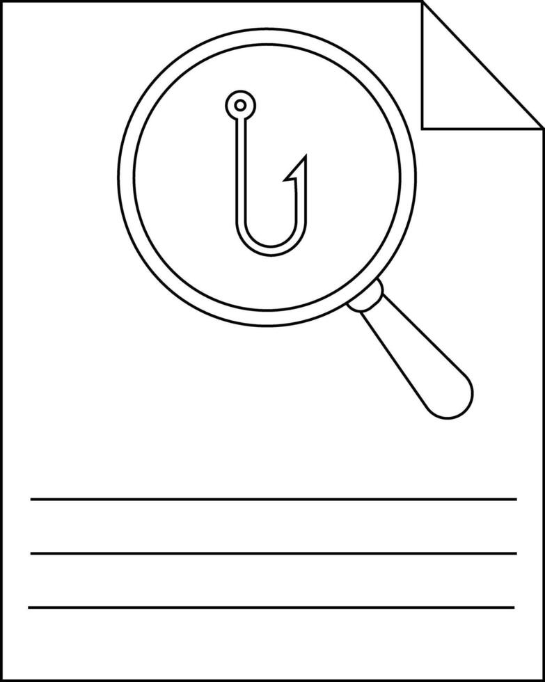 A document with a magnifying glass over a hook Three lines of text are at the bottom Pro Vector