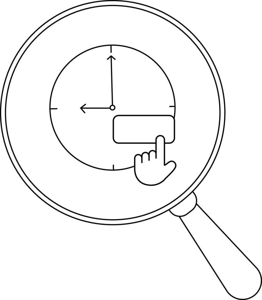 Clock under magnifying glass hand pointing to rectangular shape on clock face Pro Vector