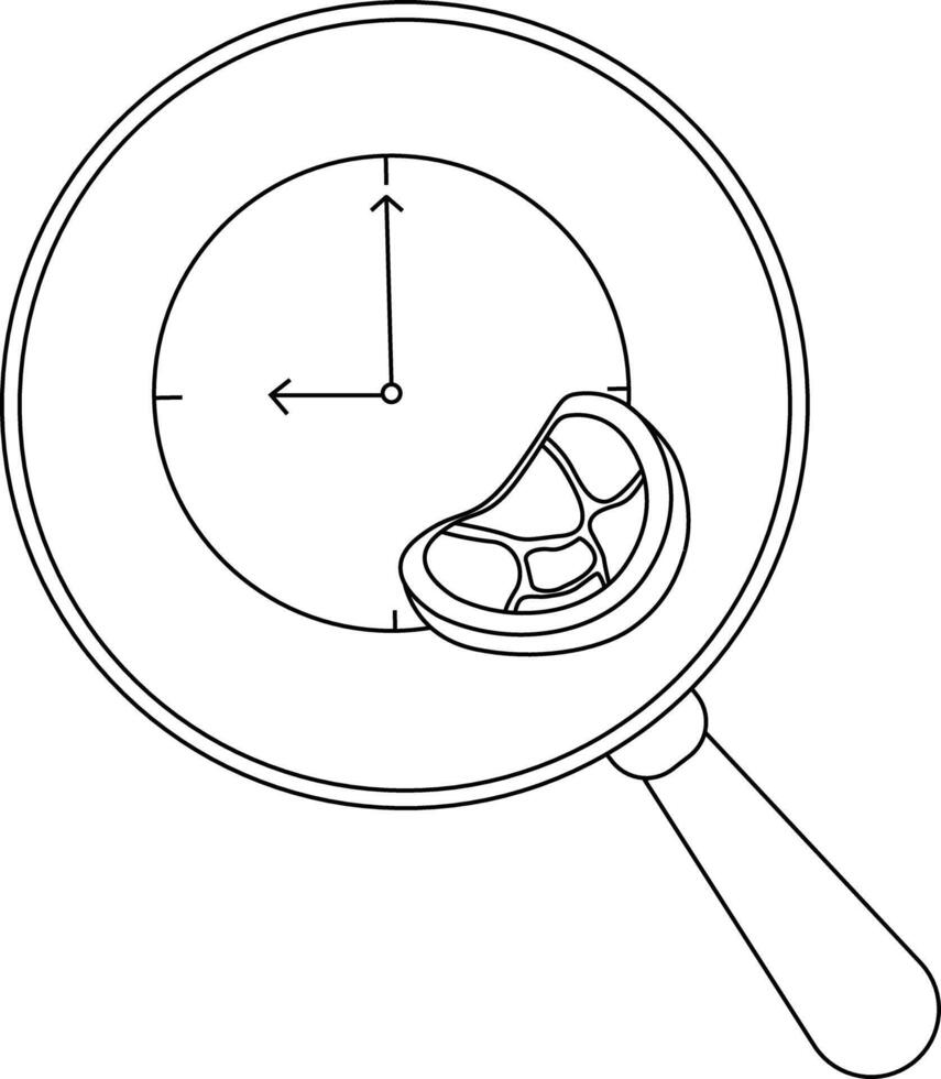 A magnifying glass enlarges a clock face and a lemon slice overlapping the clock Pro Vector