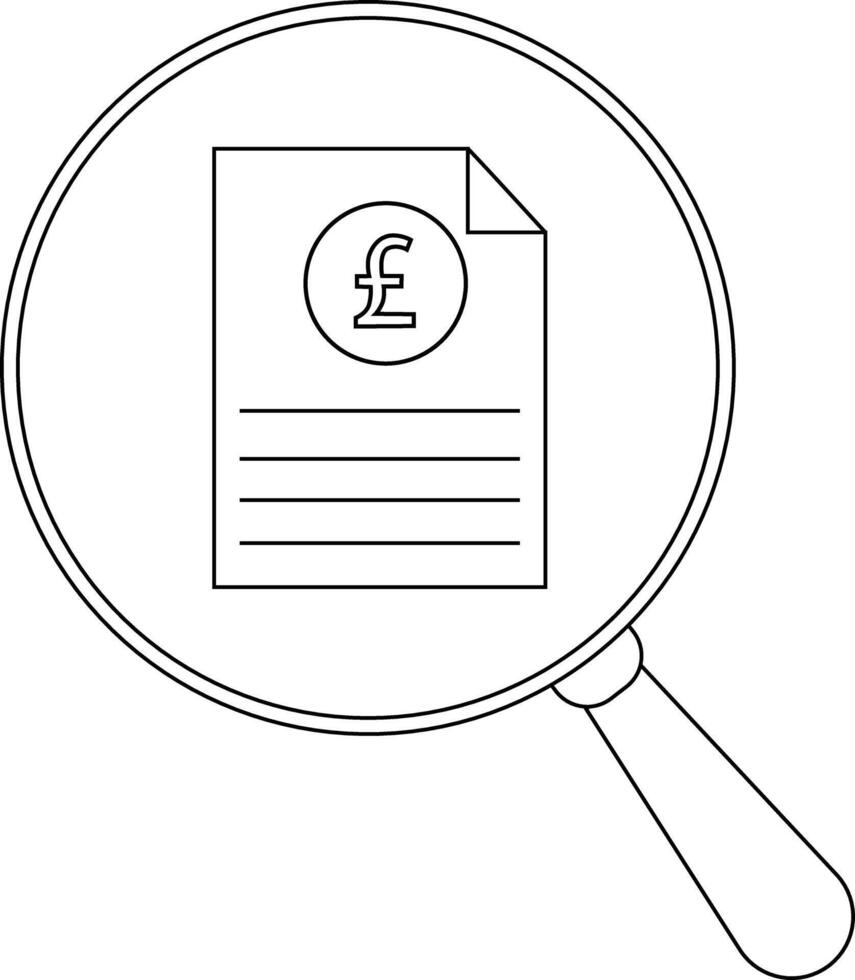 A magnifying glass focuses on a document displaying a currency symbol and horizontal lines Pro Vector