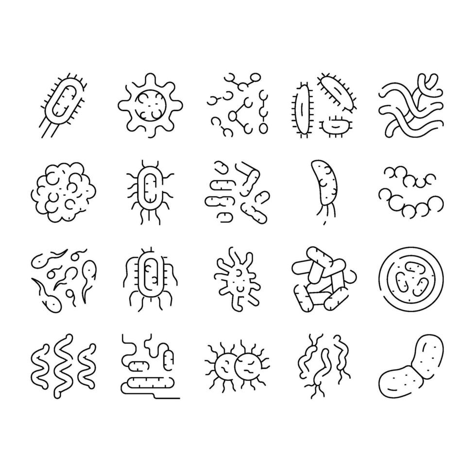 Bacteria and virus microbe icon set visualizing microorganism and cell line art Pro Vector