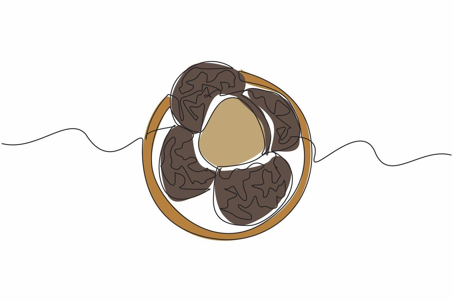Continuous one line drawing a pile of truffles split in two at the top. Foods that contain the aroma of nuts or garlic. Mushroom. National Truffle Day. Single line draw design illustration Pro Vector