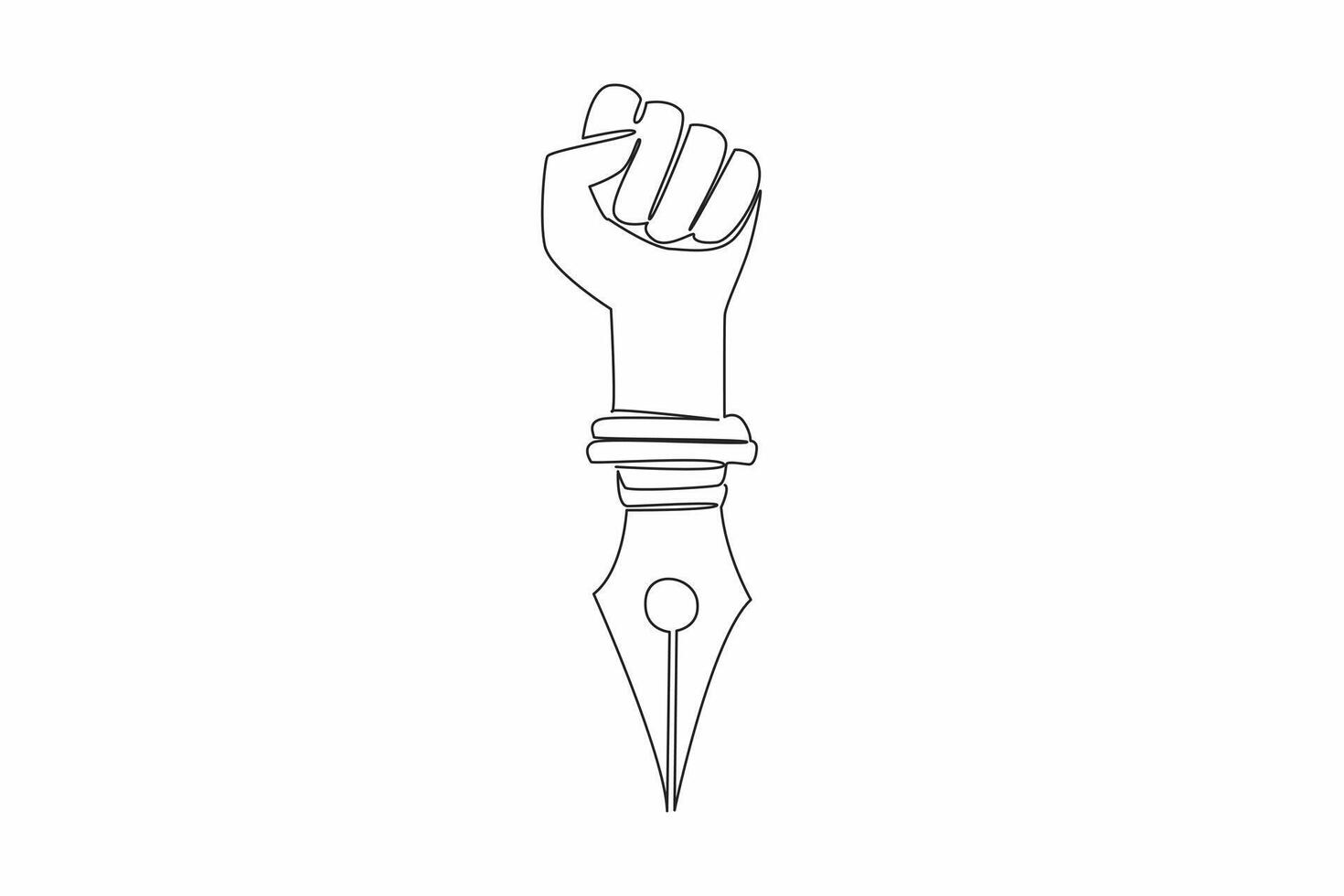 Single continuous line drawing a hand that is clenched into fist, bottom like pen. Symbolism. The struggle to convey news through writing. World Press Freedom Day. One line design Pro Vector