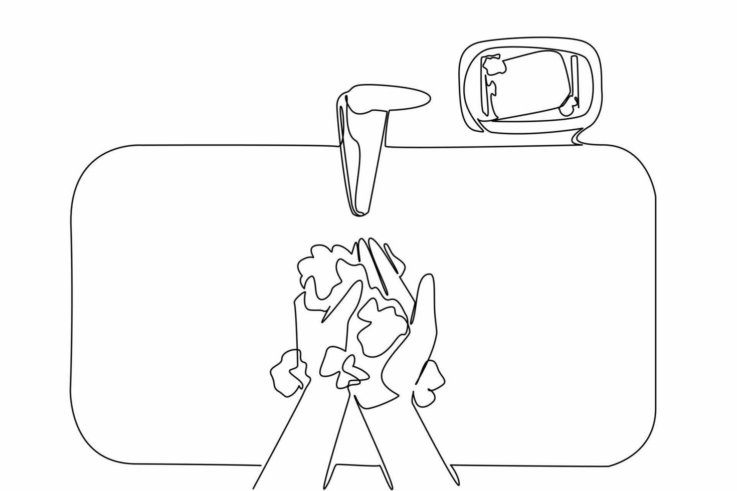Single continuous line drawing a pair of hands being washed in the sink with soap bar. Actions to prevent the spread of the virus. Protect. World Hand Hygiene Day. One line design illustration Pro Vector