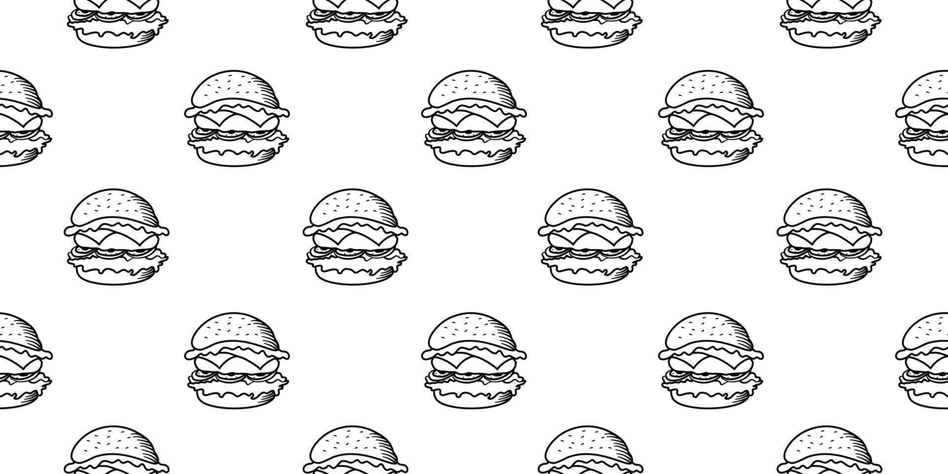 Seamless Pattern of a Cheese Burger or Hamburger. Hamburger pattern. doodle fast food burger seamless pattern background. doodle burger pattern background. Pro Vector
