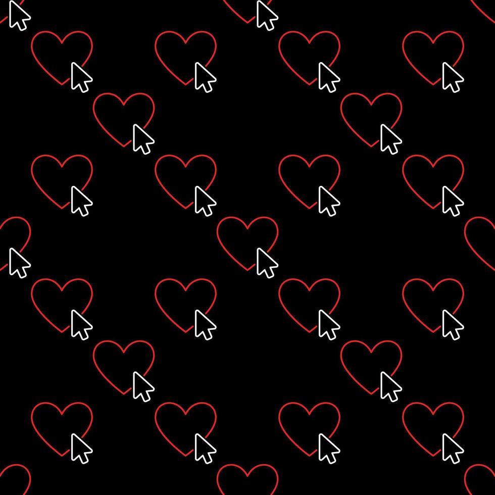 Mouse Click on Heart self-love seamless pattern in simple line style Pro Vector