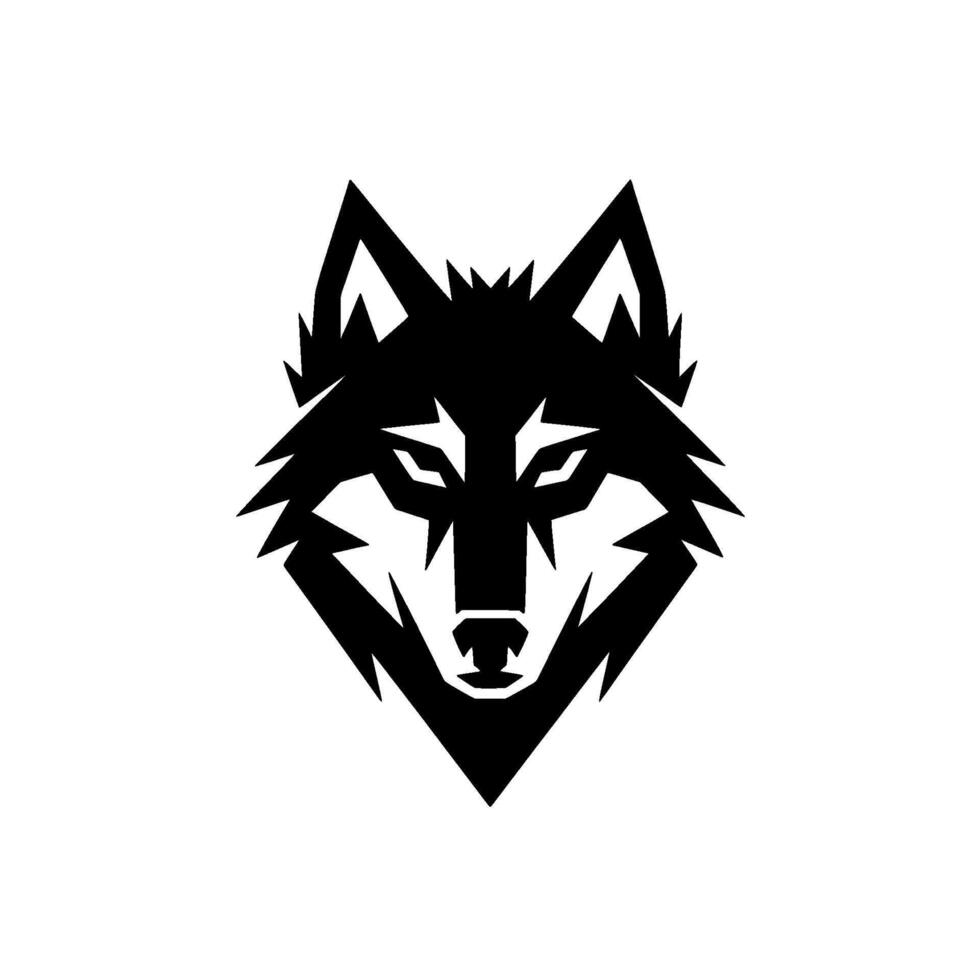 A stark geometric illustration of a fierce wolf head with sharp angular lines and piercing eyes Pro Vector