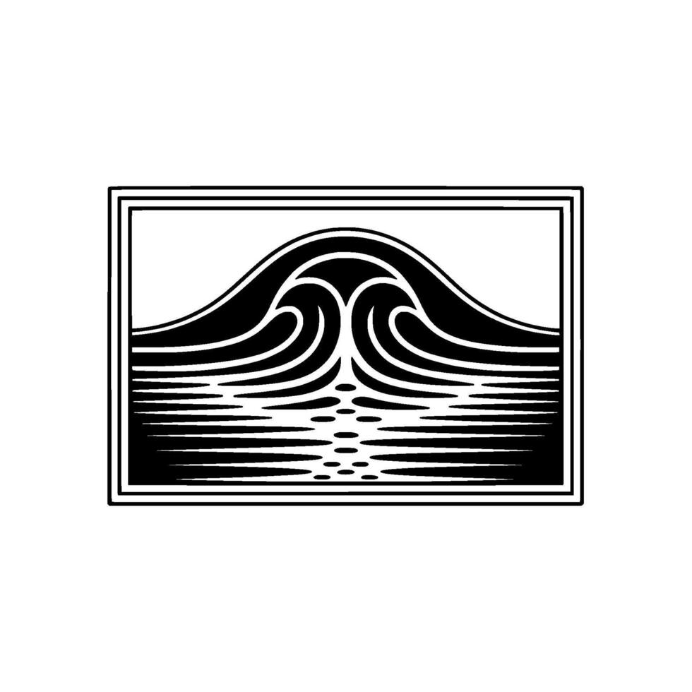 Stylized abstract illustration of breaking ocean waves with reflections in a rectangular frame Pro Vector