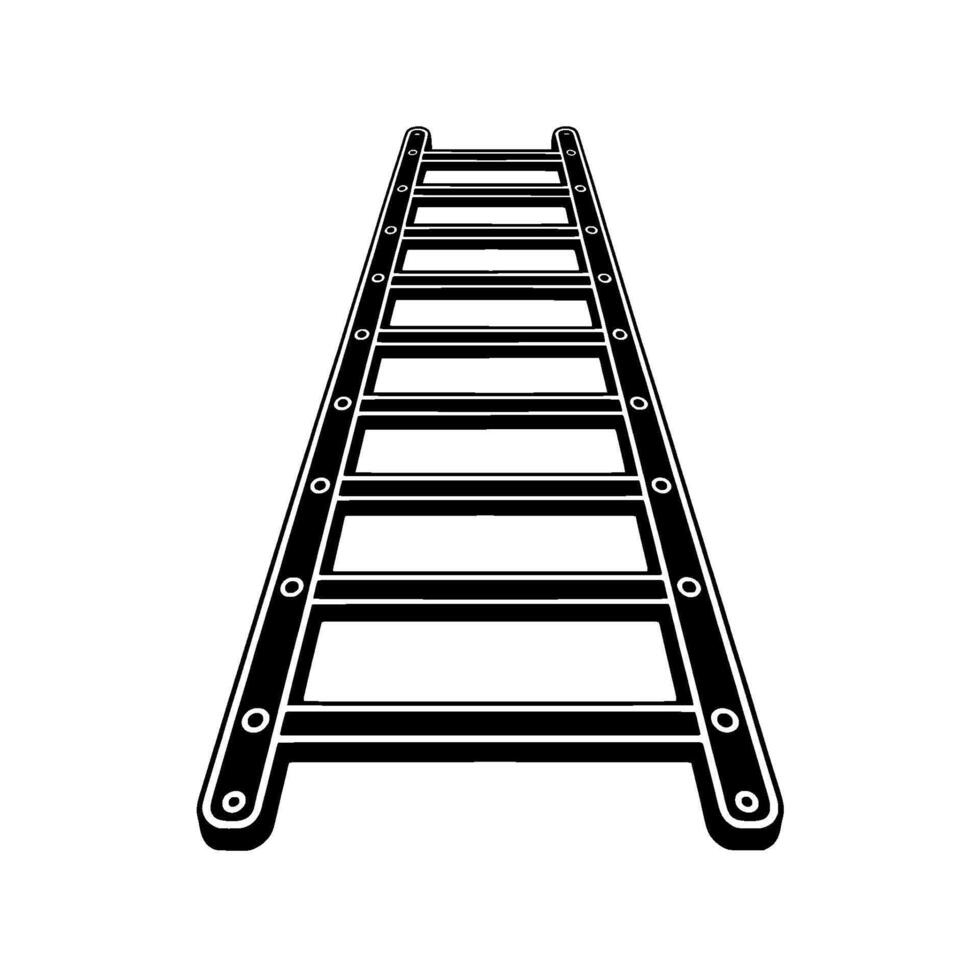 A stark silhouette of a simple straight ladder with distinct rungs and circular rivets extending upwards Pro Vector