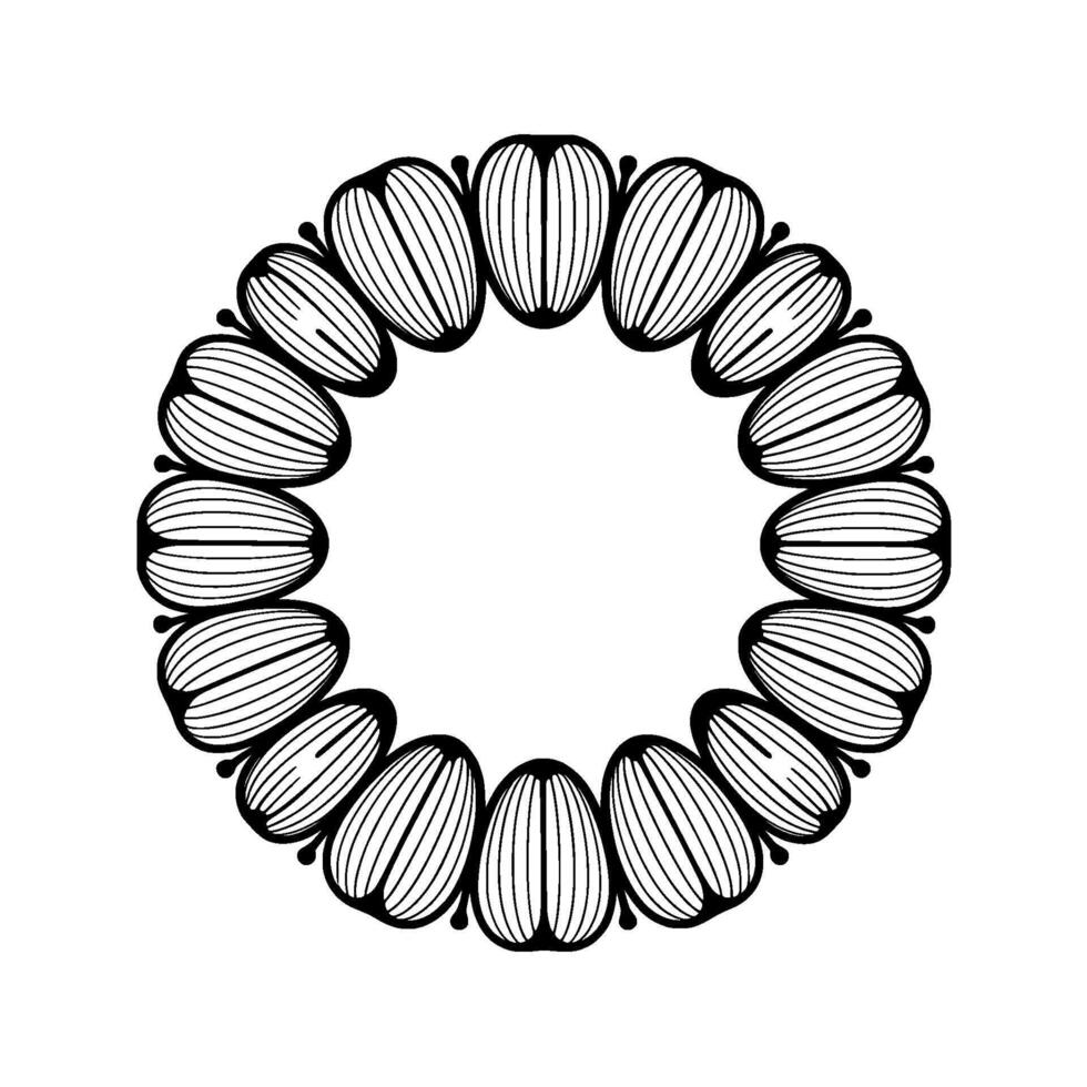 A striking abstract circular mandala featuring stylized organic petal shapes with delicate internal lines forming a symmetrical repeating pattern Pro Vector