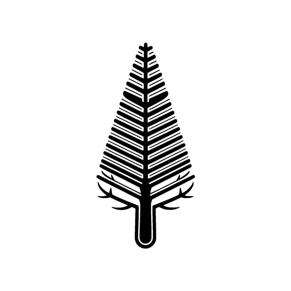 A bold silhouette of a stylized evergreen tree with horizontal branches and a subtle U shaped trunk isolated Pro Vector