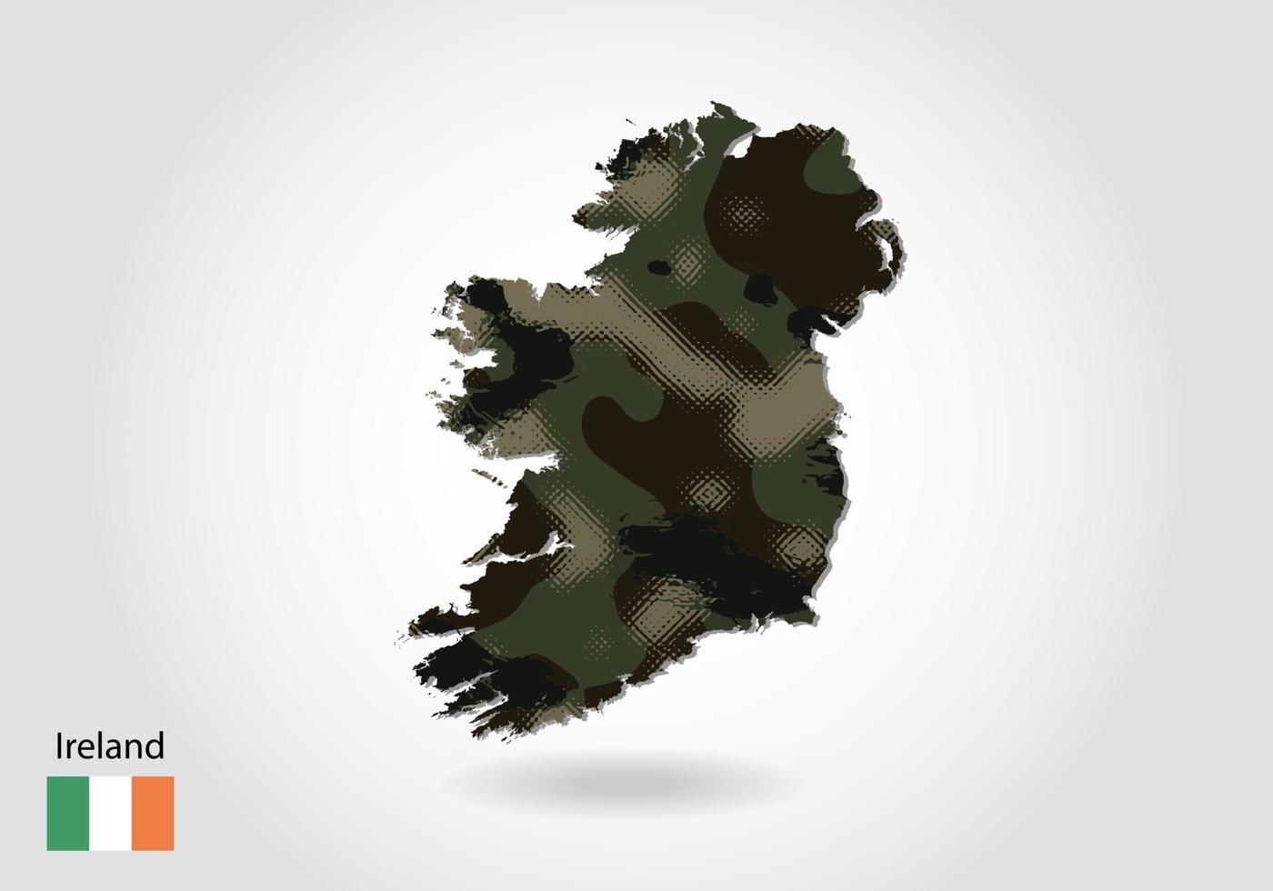 ireland map with camouflage pattern, Forest - green texture in m Pro Vector