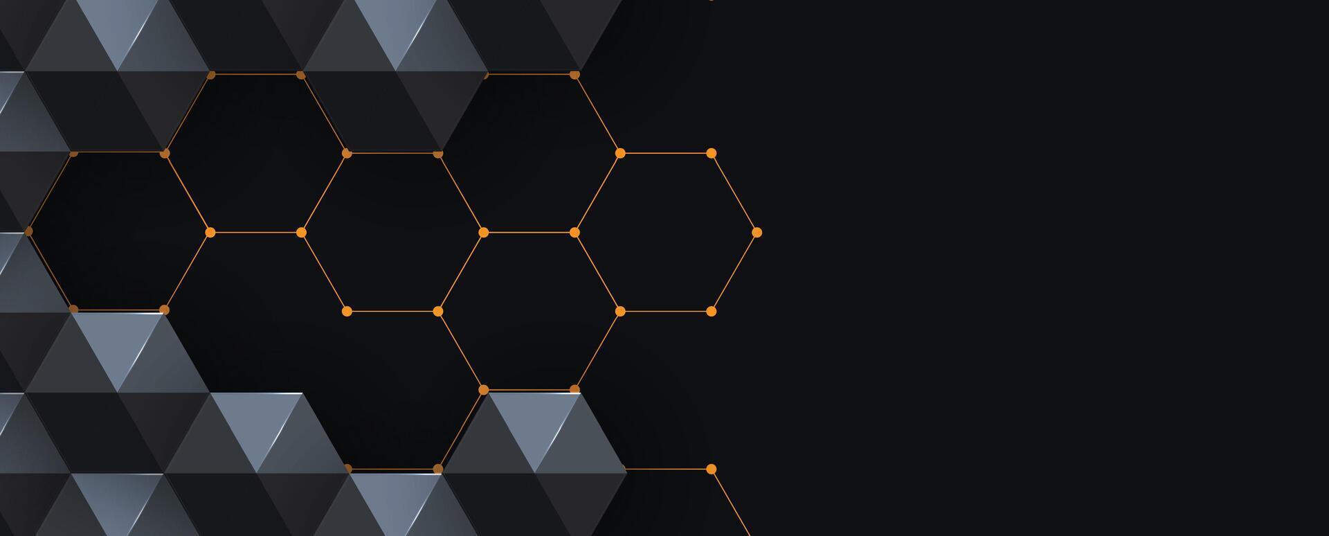 abstract background with hexagonal shapes on black background Pro Vector