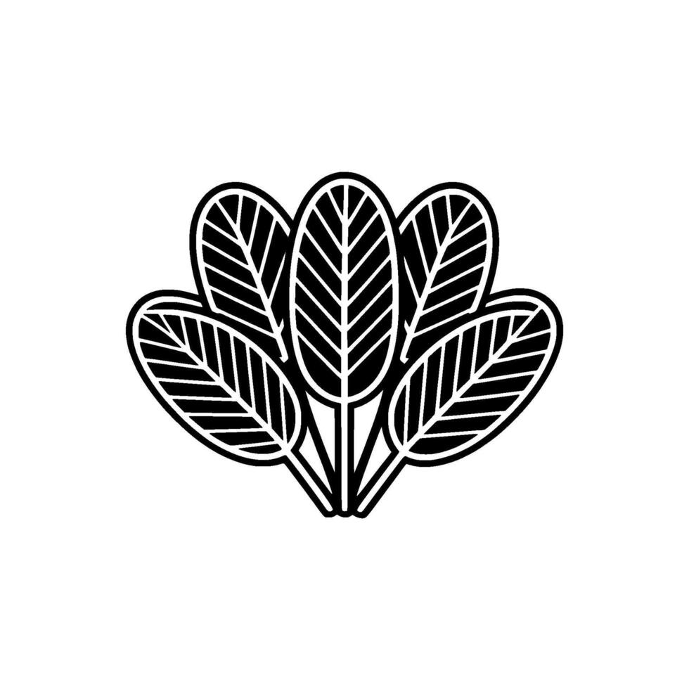 A stylized minimalist of five ovate leaves with parallel vein patterns radiating from a central stem Pro Vector