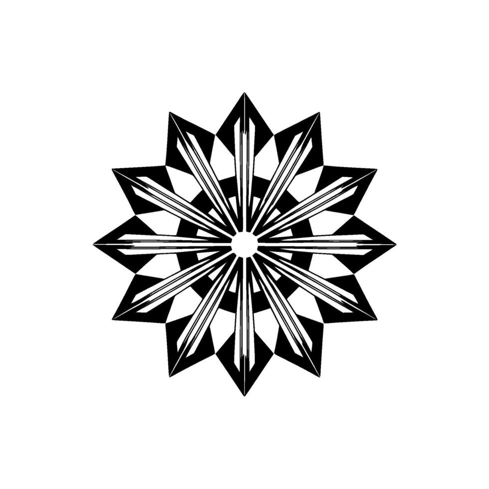 A striking geometric radial starburst pattern with sharp triangular elements radiating from a central circular void Pro Vector