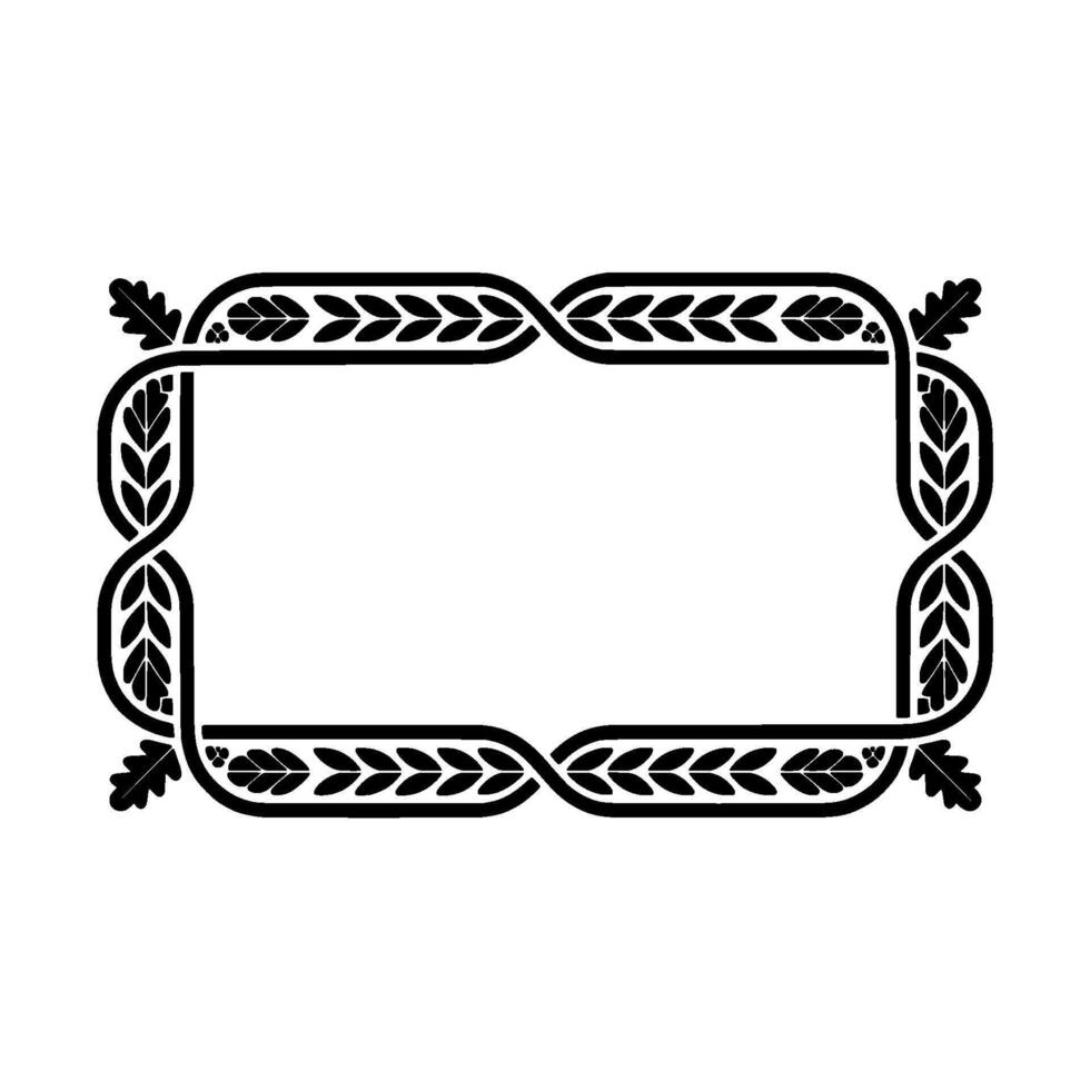 Elegant illustration of a rectangular border featuring intertwined scrolling leaves and stylized oak leaves at each corner Pro Vector