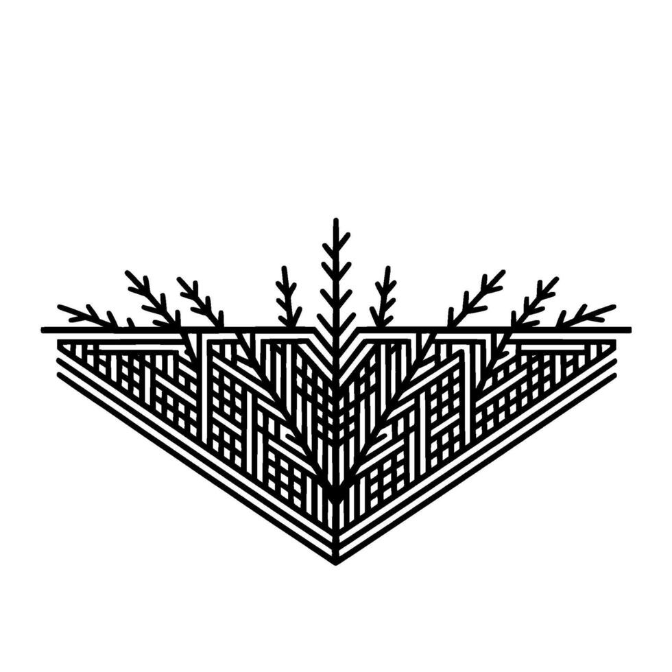 Abstract geometric minimalist illustration of stylized evergreen tree branches emerging from a triangular patterned base isolated Pro Vector