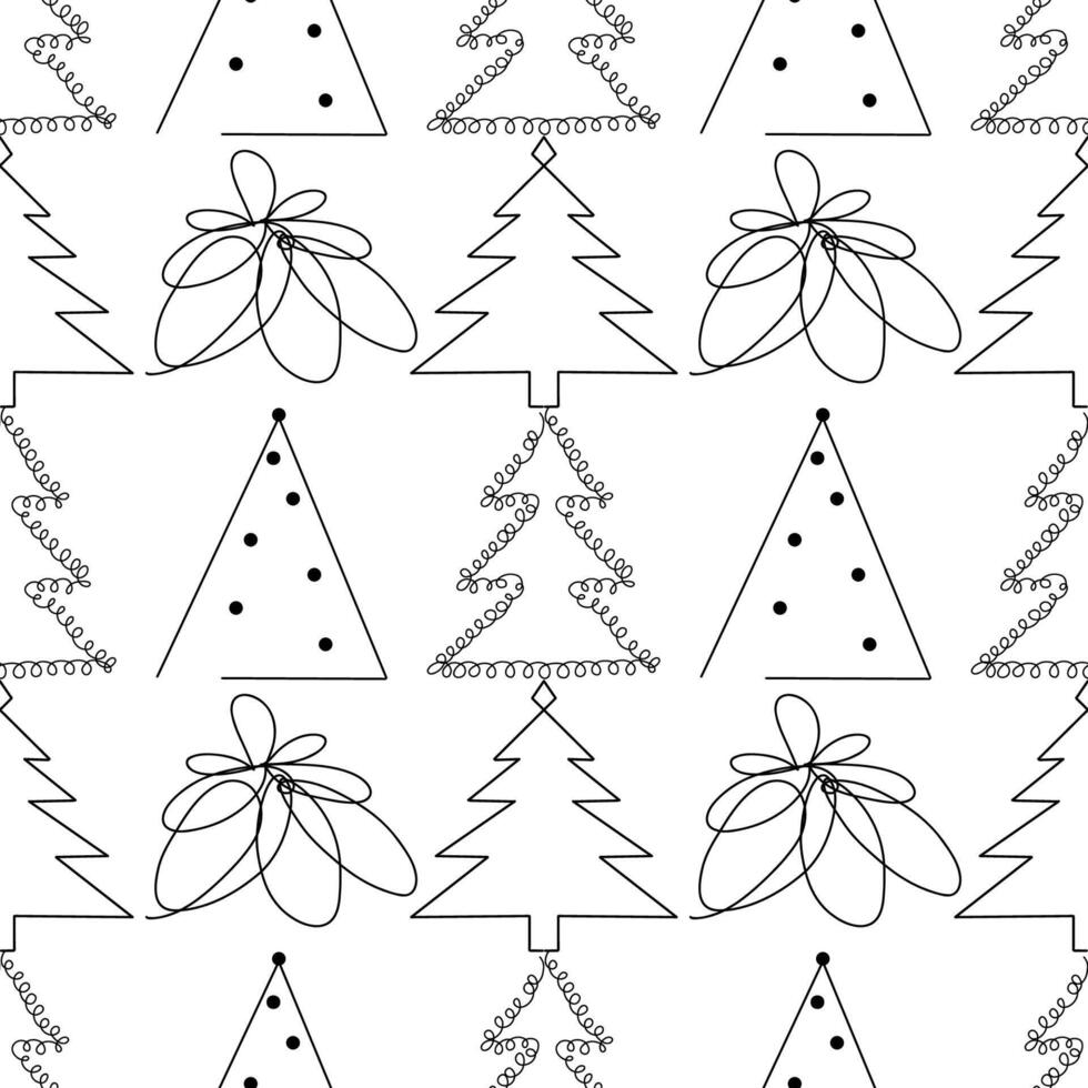 Seamless pattern. Line art of abstract Christmas trees with ornaments for your design.5 Pro Vector