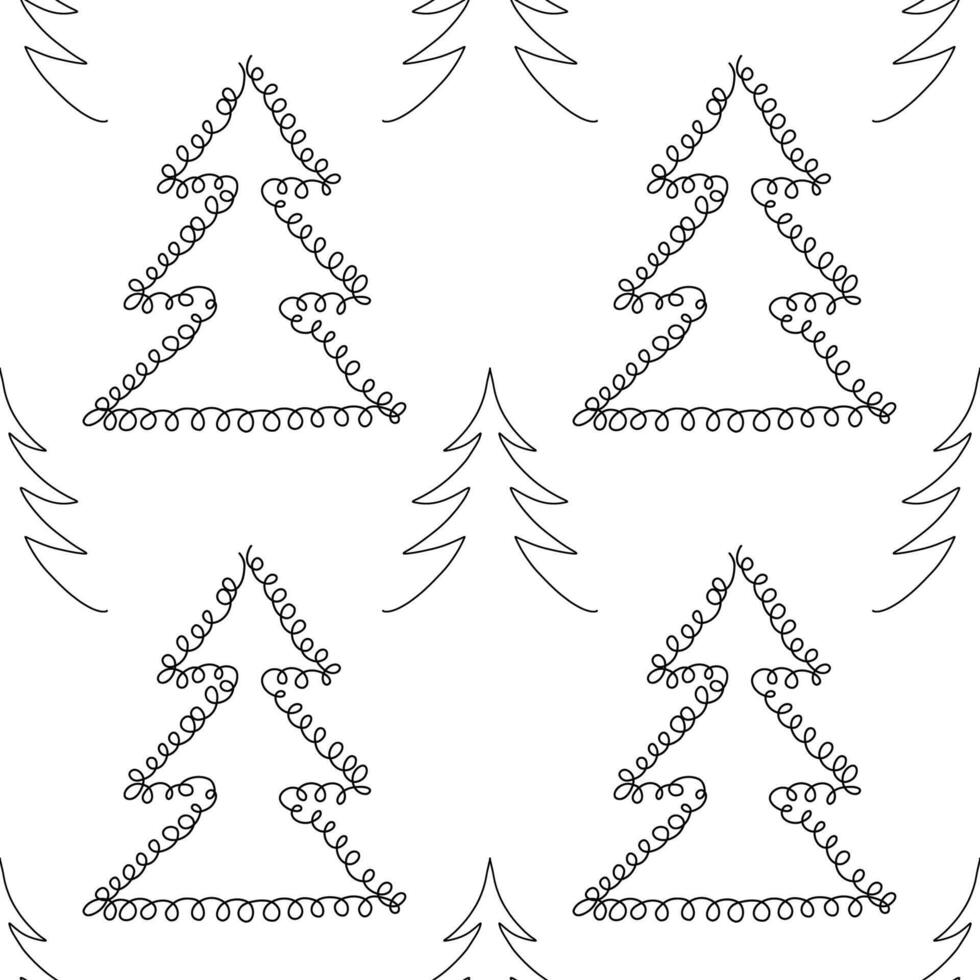 Seamless pattern. Line art of abstract Christmas trees with ornaments for your design.2 Pro Vector