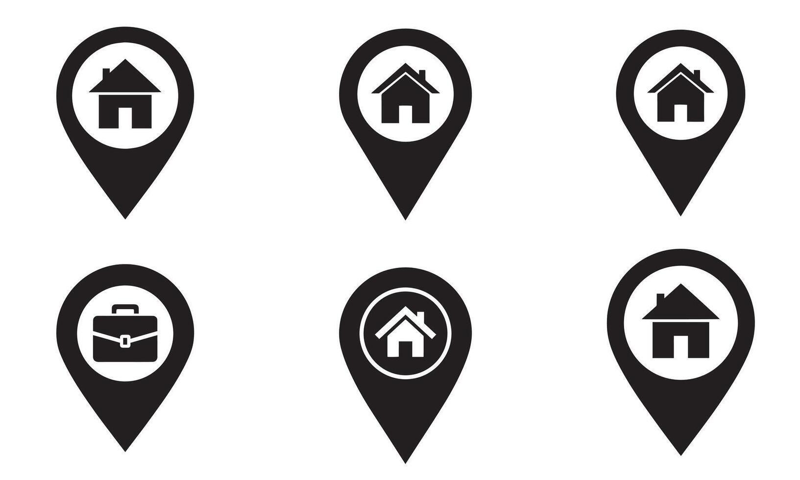 Set of black location pointers with home and briefcase icons isolated on white Free Vector