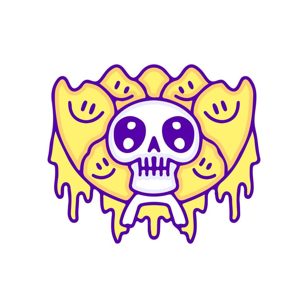 Whimsical Skull Art A Playful Design Featuring Smiling Faces and Melty Elements for Creative Use Pro Vector