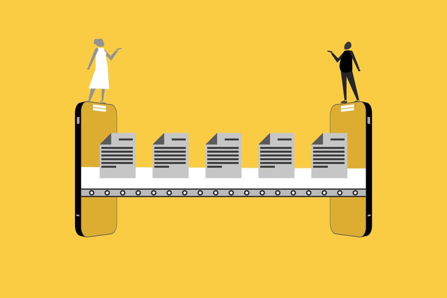 File transfer and data sharing. Moving and copying a digital document from one folder to another. Information exchange, documentation, and archive management. Pro Vector