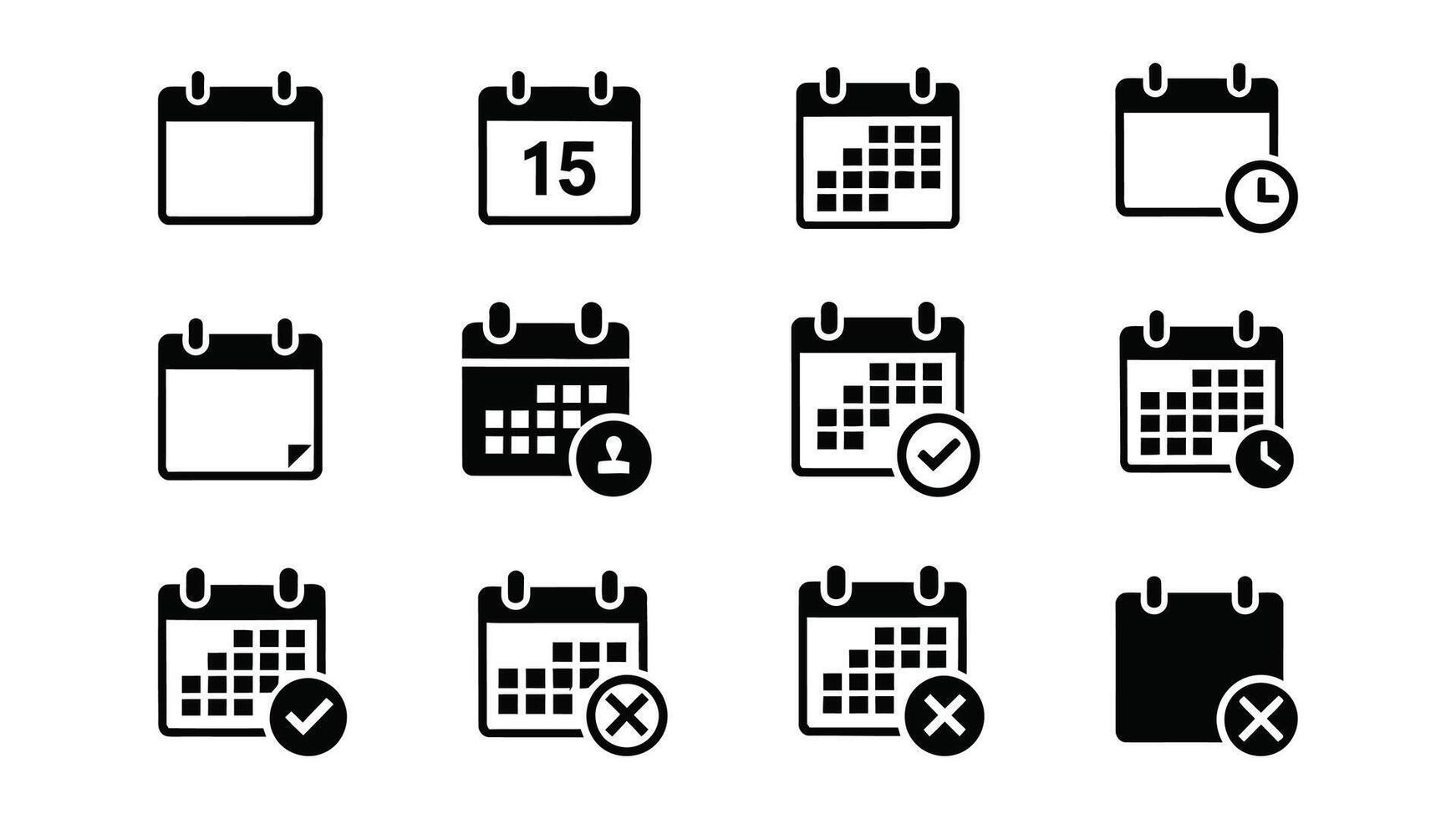 Collection of calendar icons showing different dates and statuses Pro Vector